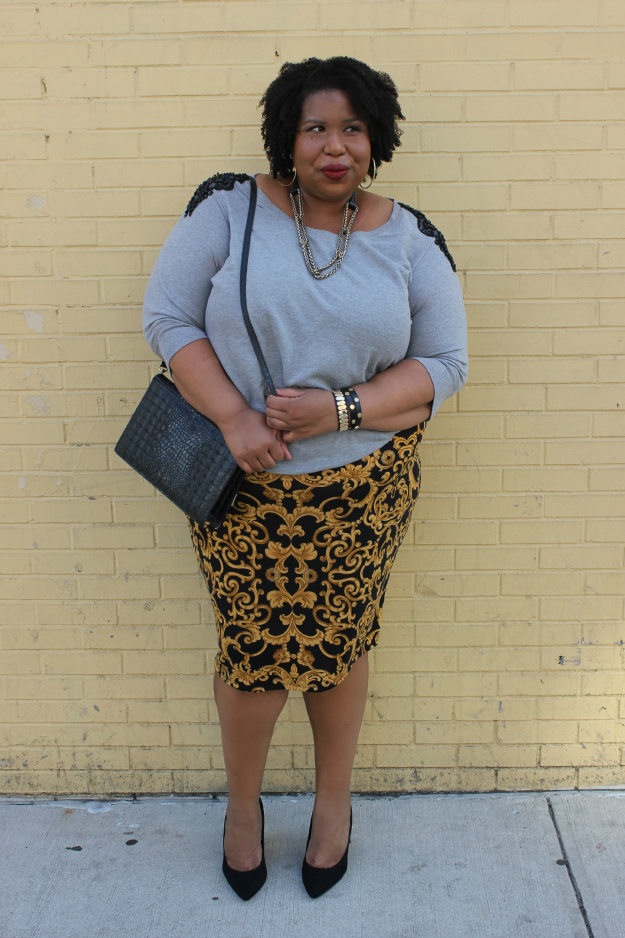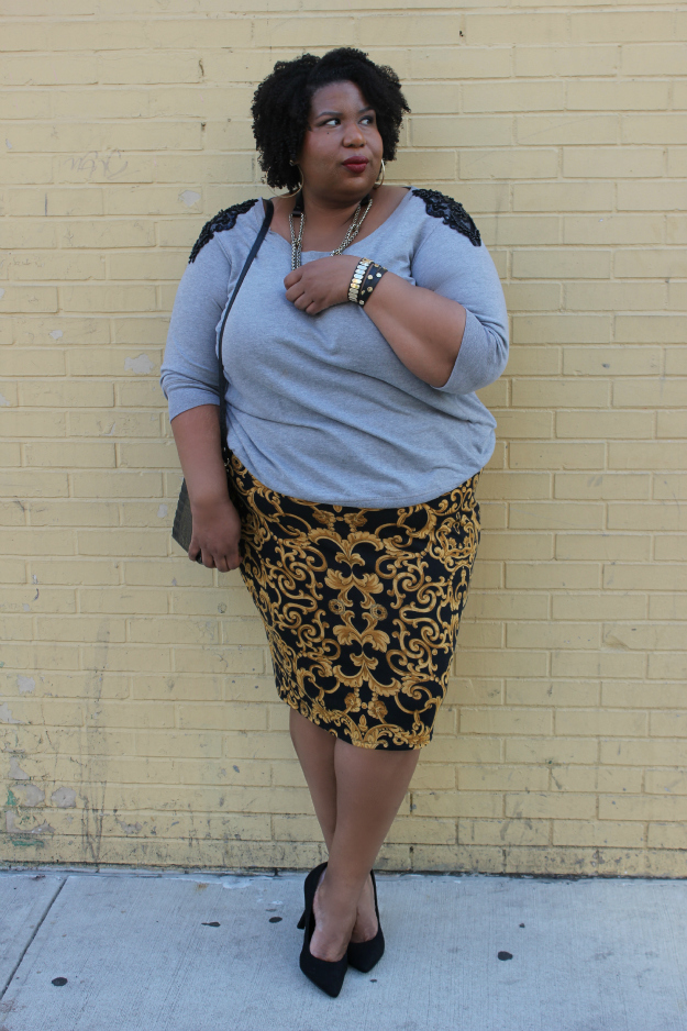 We have a long way to go, but finding color leather jackets and a baroque skirt might not have happened 10 years ago, hell…5 years ago. So I’m trying to focus on the positive! I will say however that a lot of the pieces that are really on trend and don’t look like they where plucked from my grandmother’s closet come from the junior plus and mega fast fashion retailers and many of us would like these pieces in quality fabrics and well made overall.