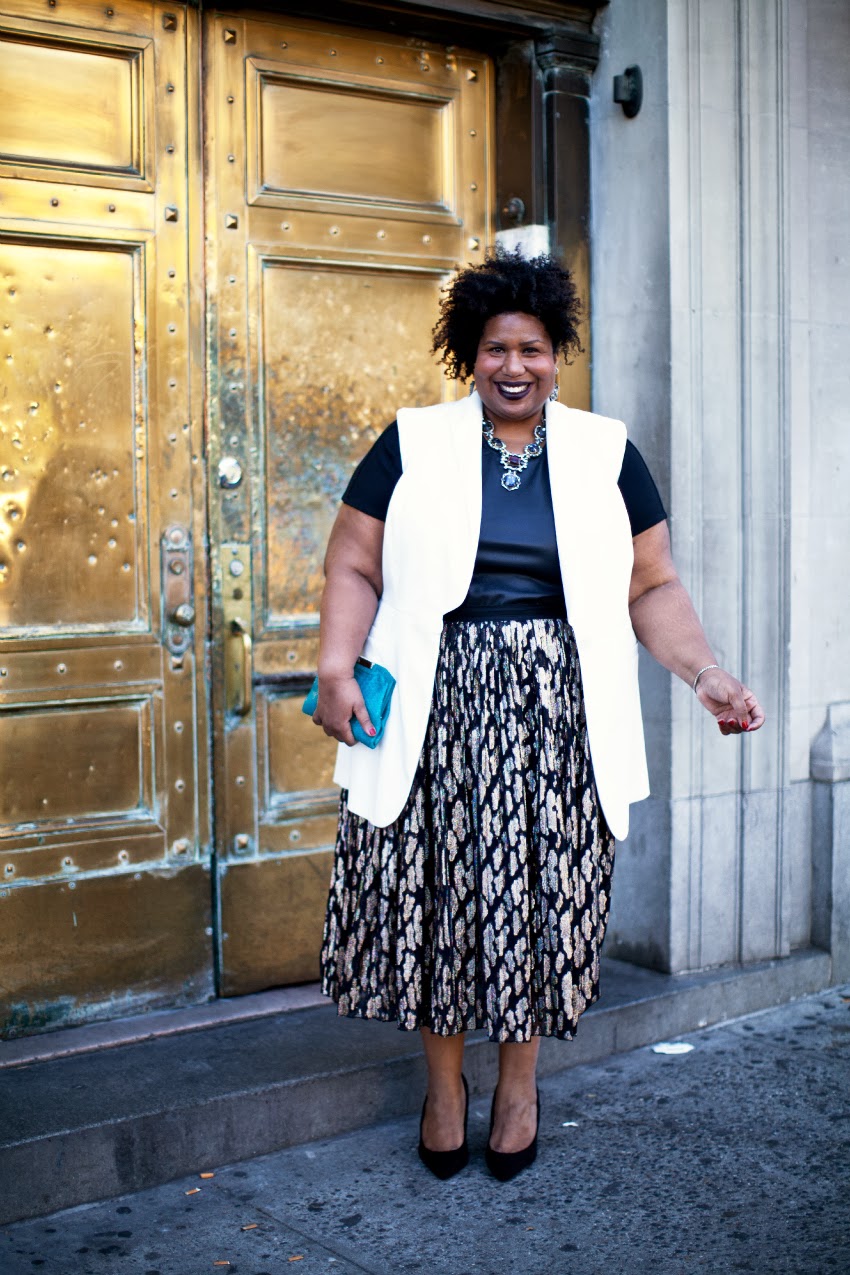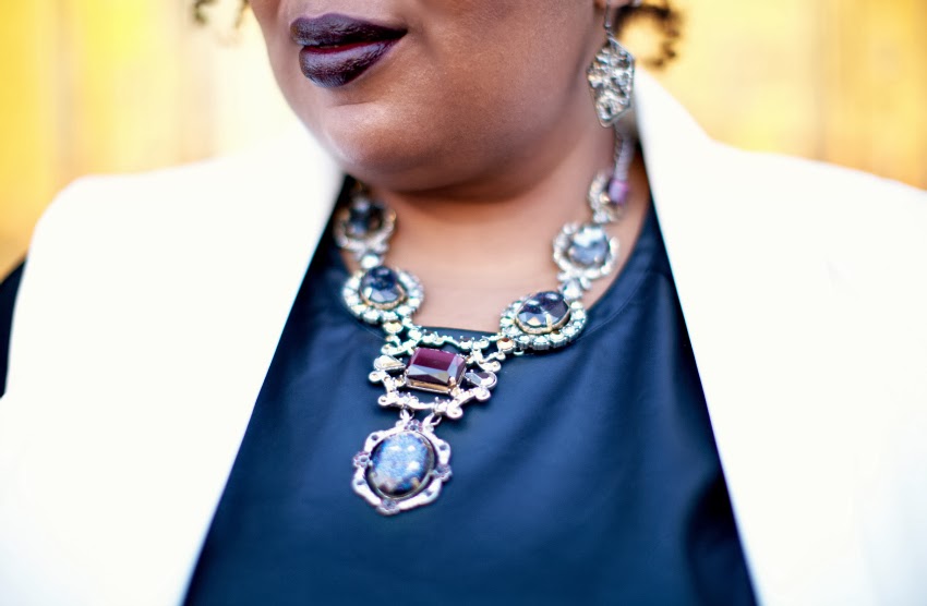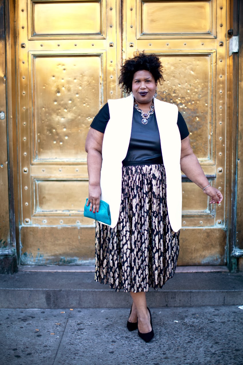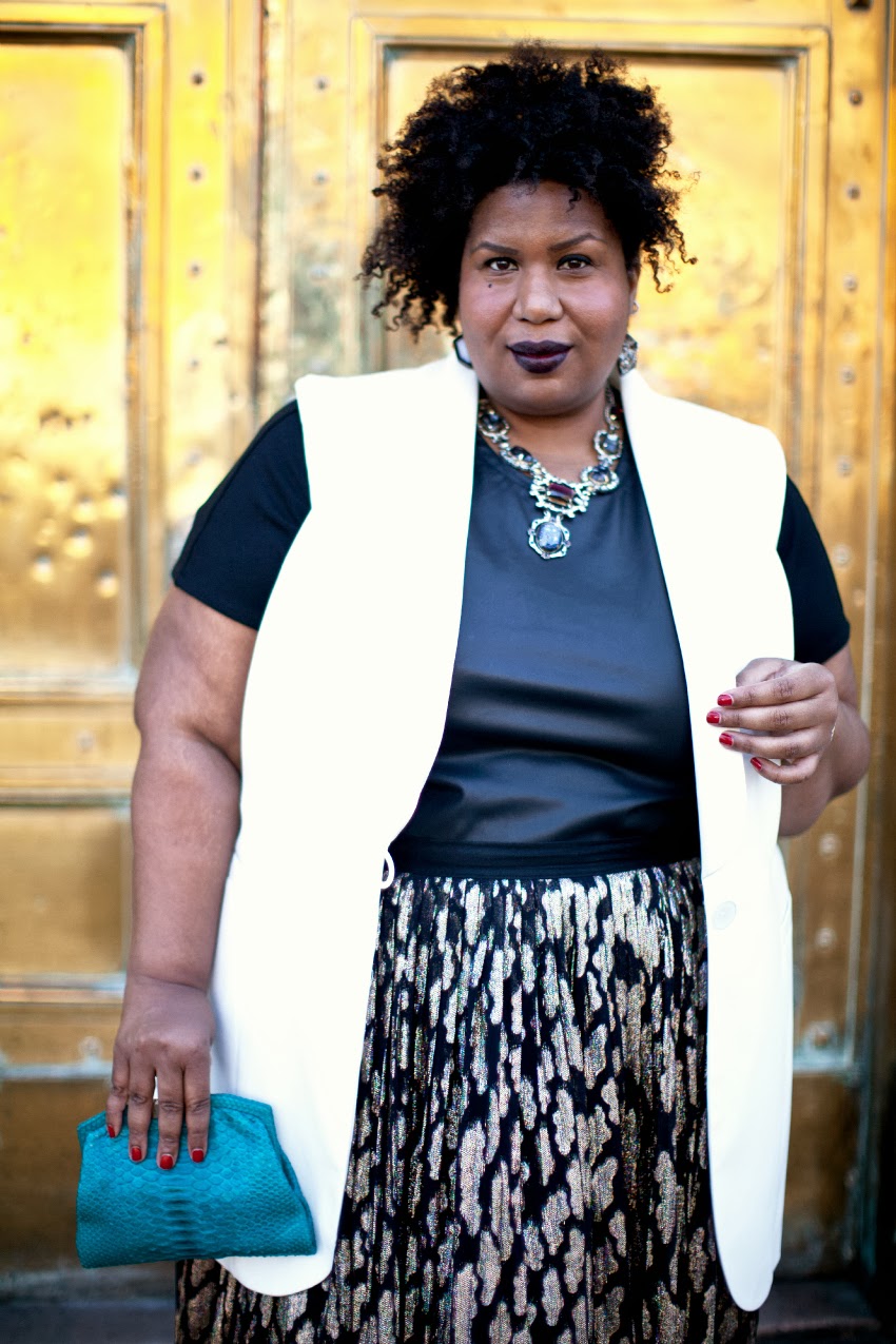 Blazer: Big Beauty x JMP (Jean Marc Philippe Paris), Leather T-shirt: c/o MYNT 1792, Full Skirt: ASOS Curve, Necklace: Zara, Eggplant Lipstick: c/o Face Stockholm