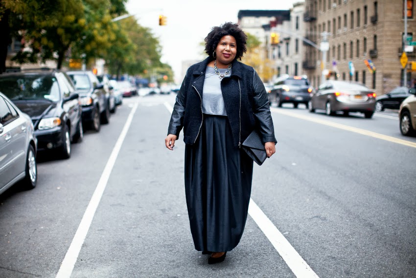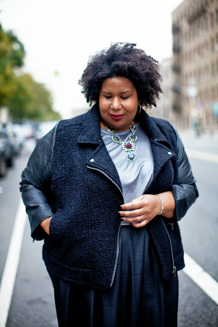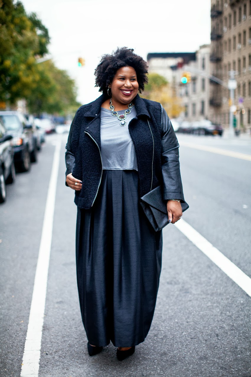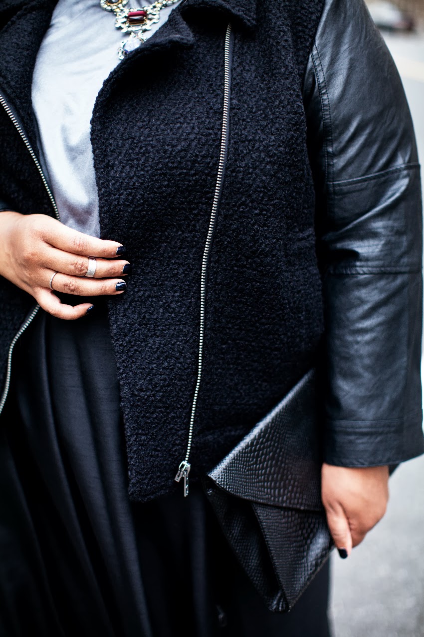 Boucle Moto Jacket: c/o Simply Be, Silver Crop Top: ASOS (main range), Silk Taffeta Maxi: Vintage, Necklace: Zara, Clutch: c/o BooHoo