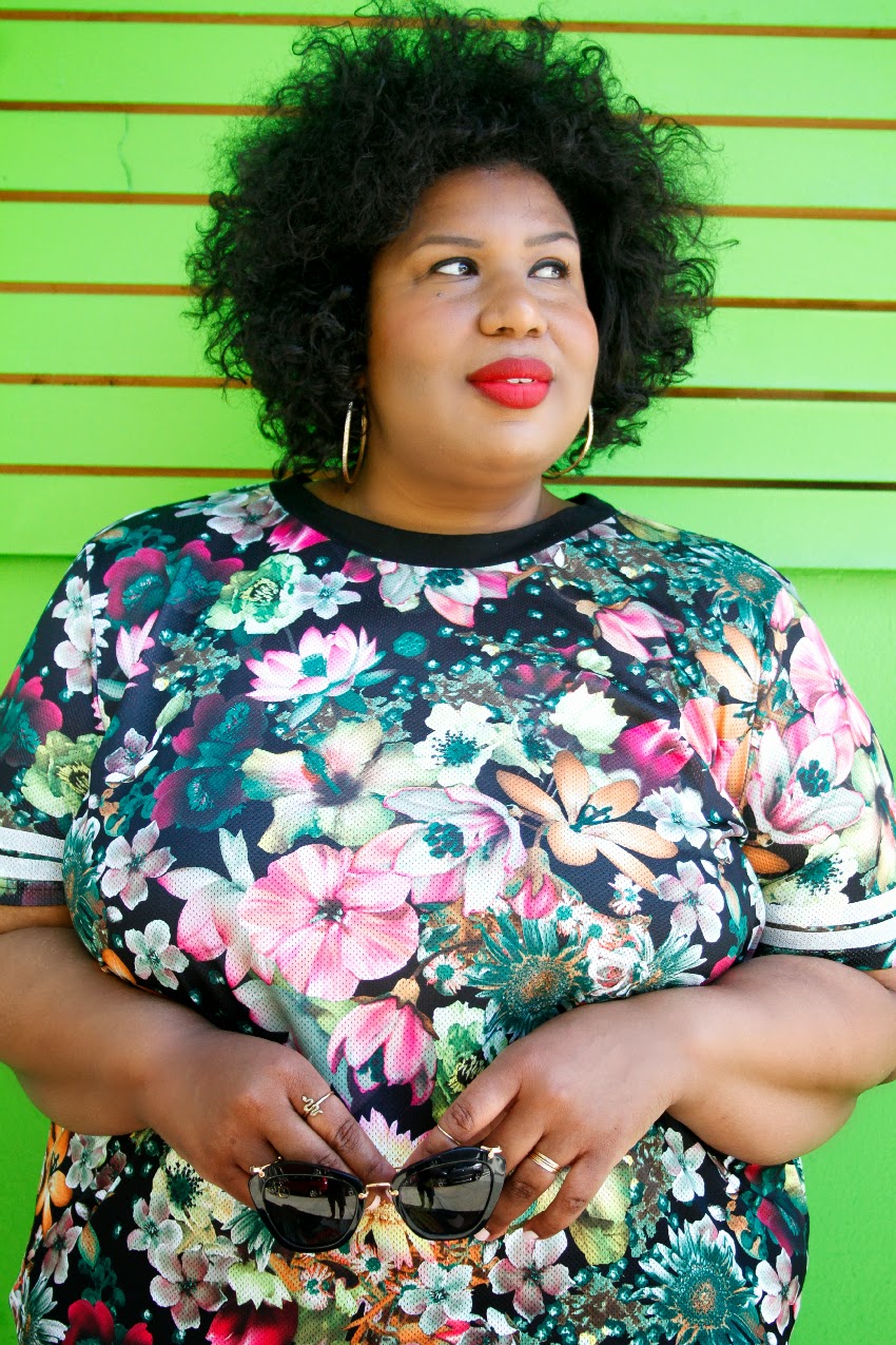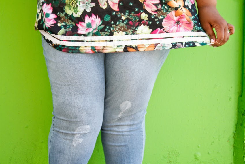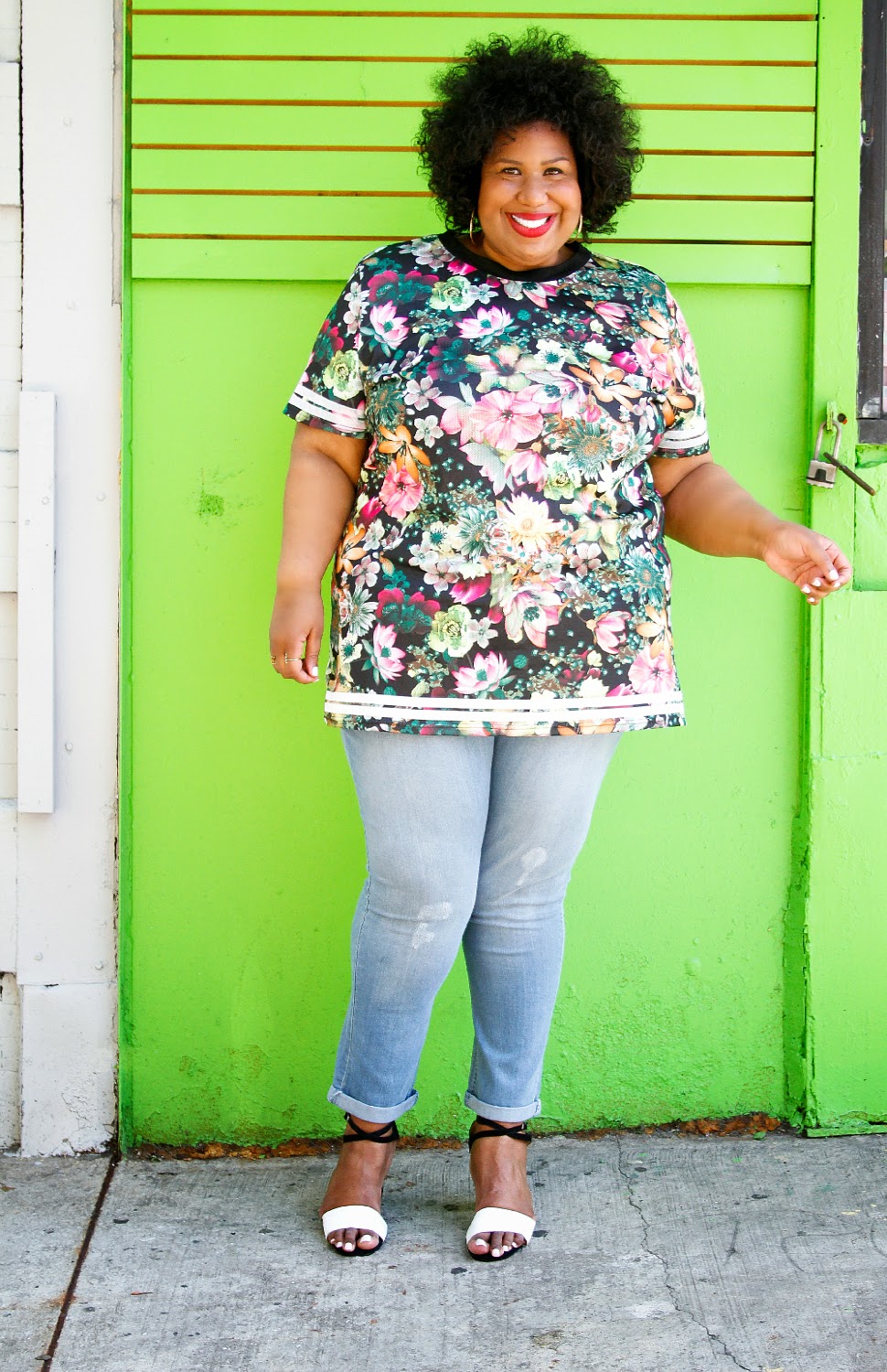 ASOS Curve Floral Jersey, Boyfriend Jeans: c/o Simply Be, Sandals: gift from Margie, Sunglasses: Miu Miu