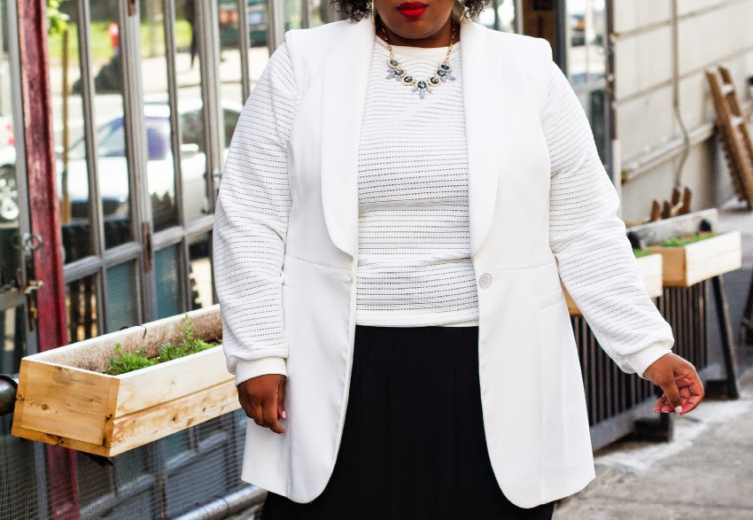 Sleeveless Blazer: Big Beauty x JMP, Textured Sweatshirt: Alice & You
