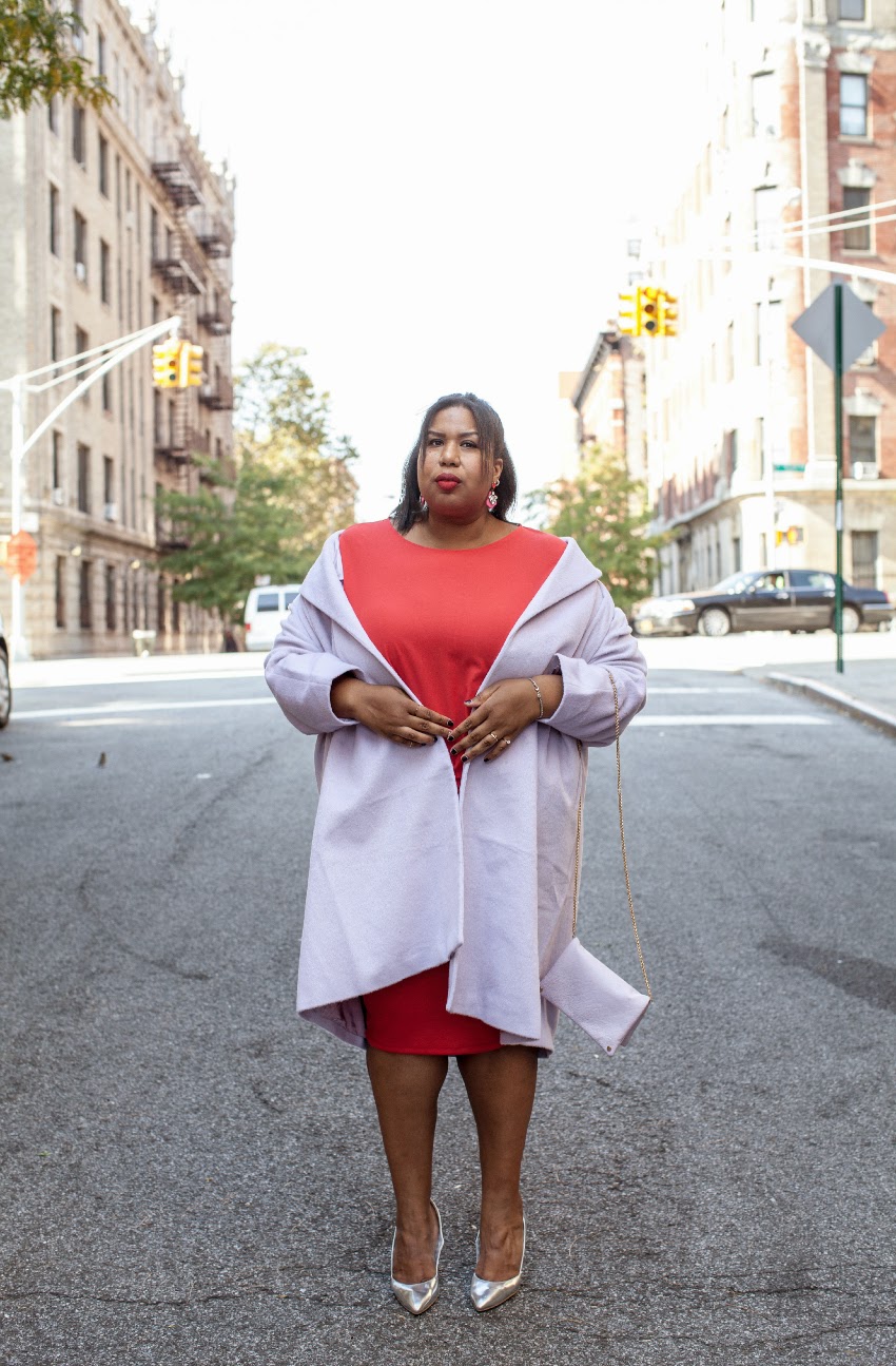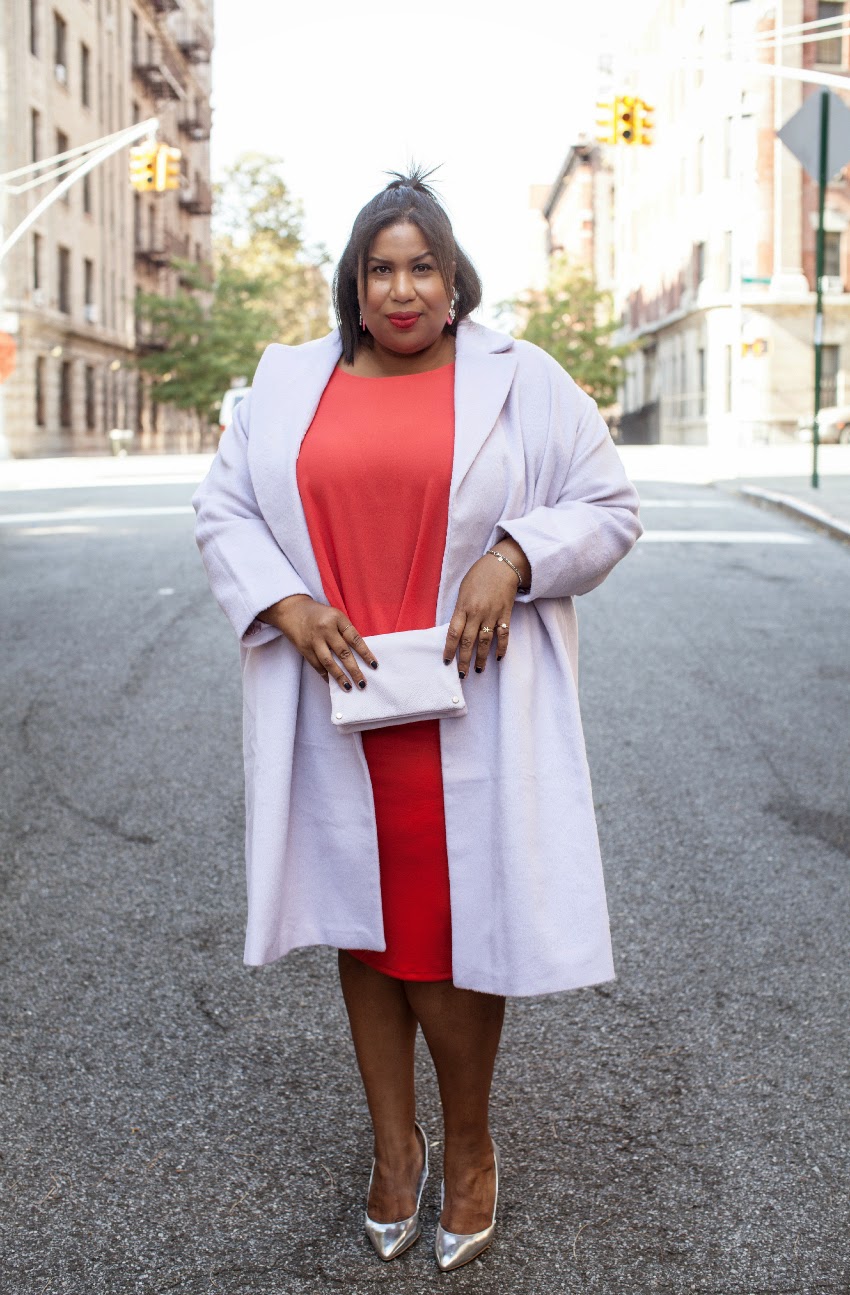 Relaxed Fit Coat: ASOS Curve, Skirt: Rebdolls, Earrings: Bauble Bar