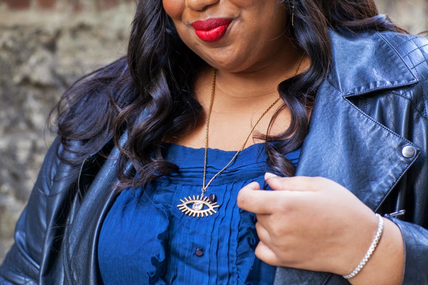 Moto Jacket c/o Simply Be | Dress, ASOS Curve (old but similar here) | Lashed Out Pendant Necklace, Bauble Bar | Aster Cut out Ankle Booties, Long Tall Sally
