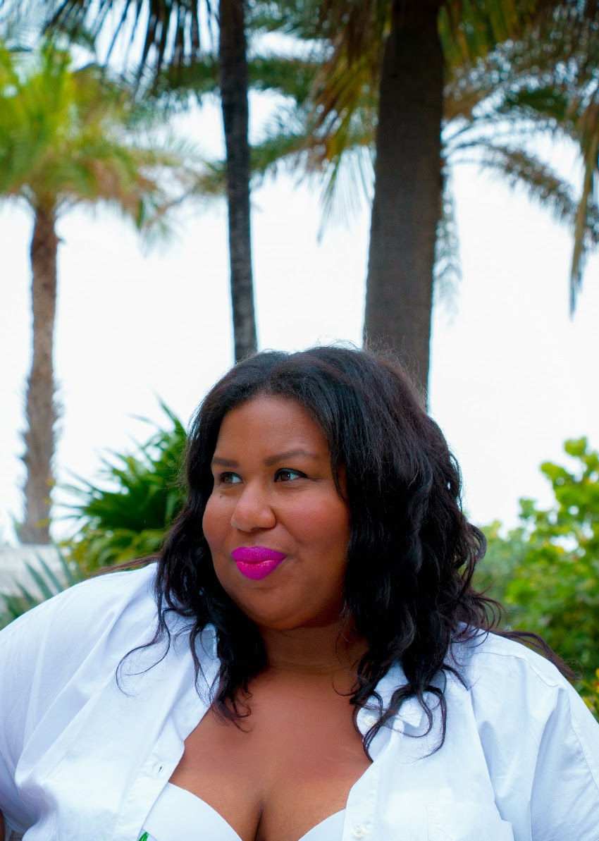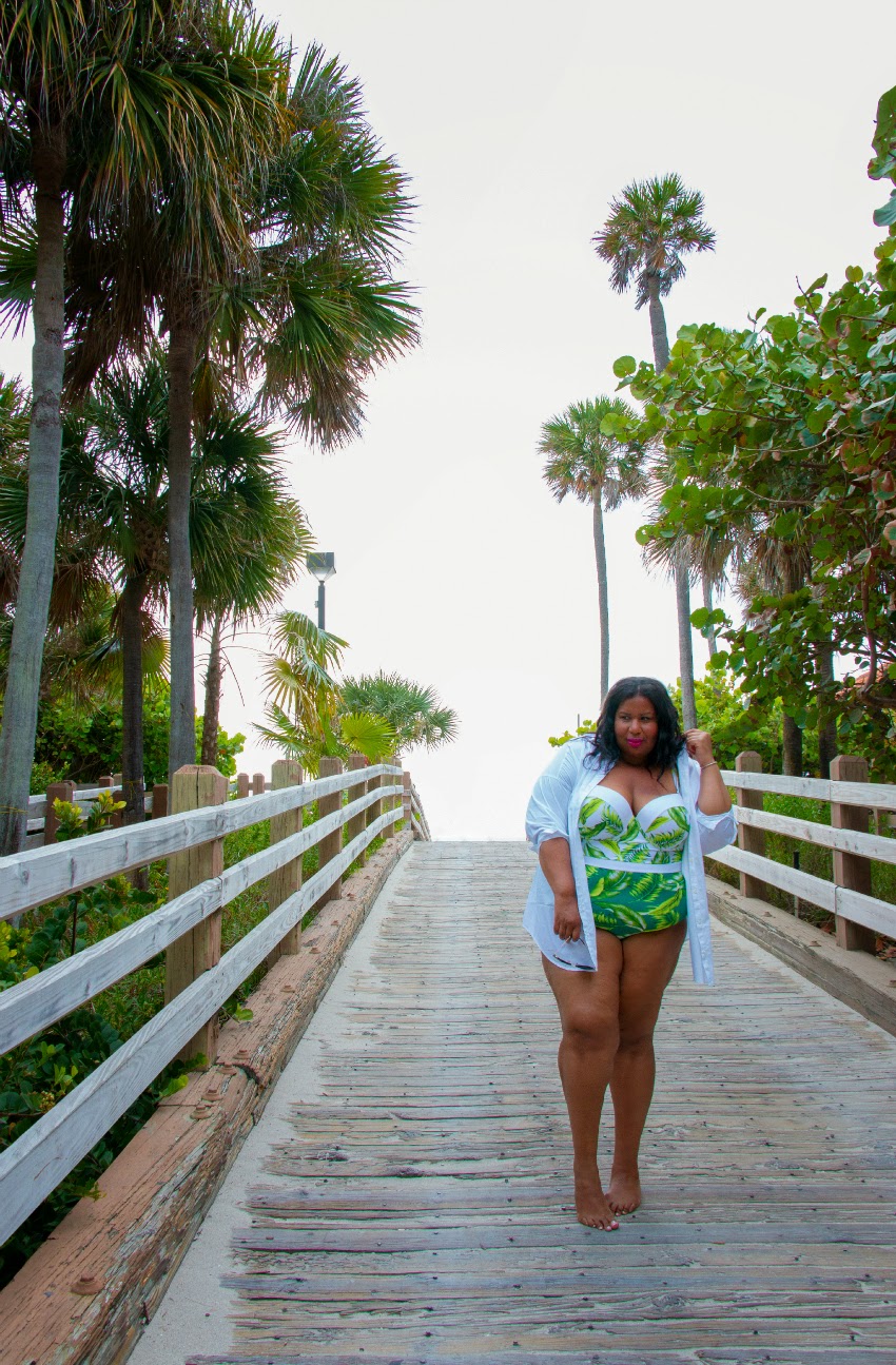 Boyfriend Button Down, Old Navy | Swimsuit, GabiFresh x swimsuitsforall | Sunglasses, Miu Miu