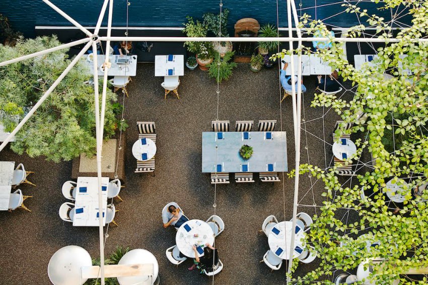 This trip, I knew I wanted a different experience. I’d venture out and stay at a hotel I’ve never been to and go for more of that home away from home feeling. I’d heard great things about Pali House – there’s one in West Hollywood (where I stayed) and one in Santa Monica – so I figured I’d give it a try. I love boutique hotels with a bit of whimsey. The first photo is the view walking into the door. I was greeted by a very friendly front desk clerk who took my luggage down the stairs. Check it was easy and the elevator to the rooms are through this charming courtyard restaurant.