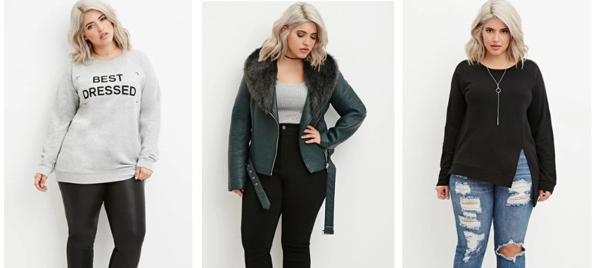 Forever 21 has some pretty stellar fall items that look so chic! I combed through the Forever 21 plus size section to find the best of the best. P.S. they look totally expensive but nearly everything is under $30 – there’s chic minimal styles, kick ass faux leather jackets (omg the pale blue!) and elevated trend pieces. Go crazy!