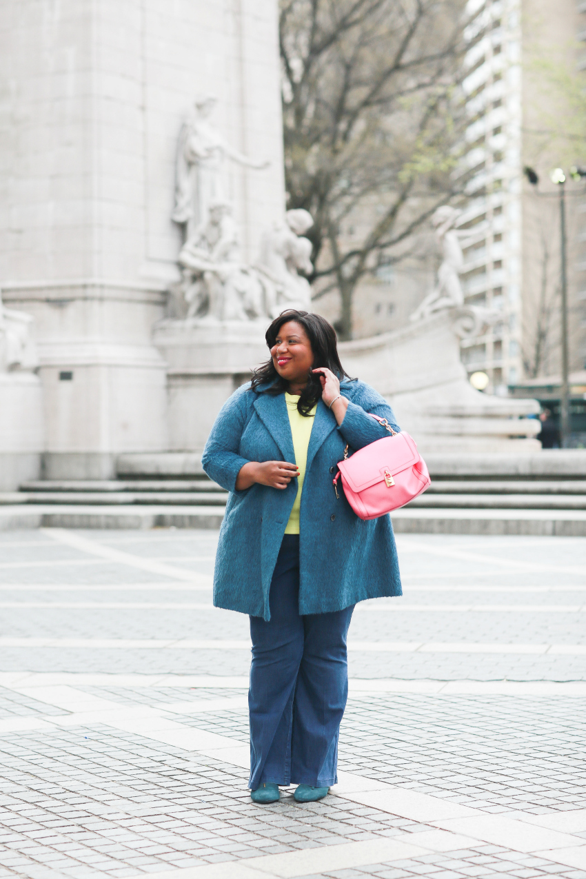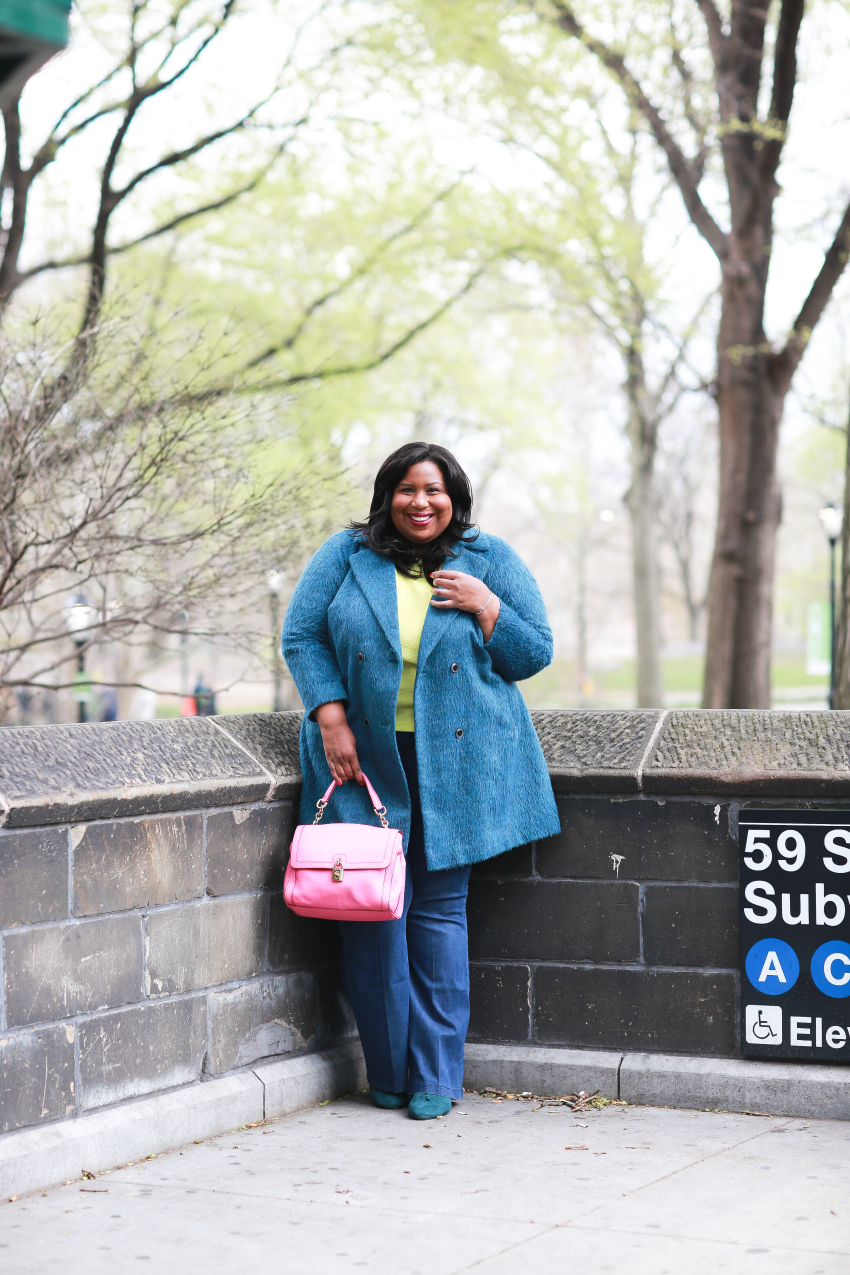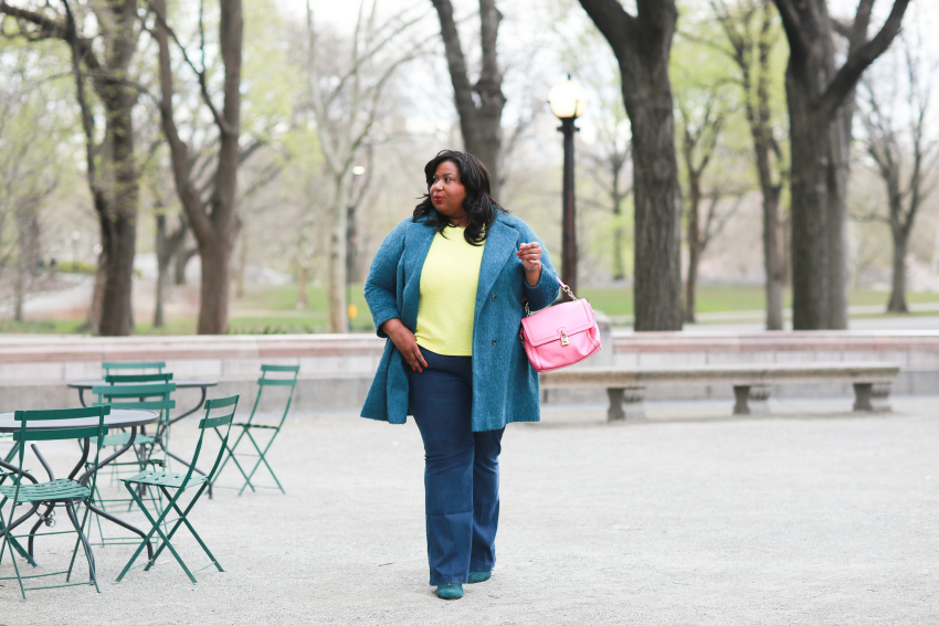 I decided to play up the classic vibe of these jeans with classic shapes but keeping my look fresh and well, me – with color. As you may have noticed I’ve been enjoying breaking out of the black. Sometimes it’s fun to play with different and contrasting tones of one color. Just add a neutral base (the jeans, yes! denim is a neutral) and a pop of another color – in this case my pink bag, to pull it all together!