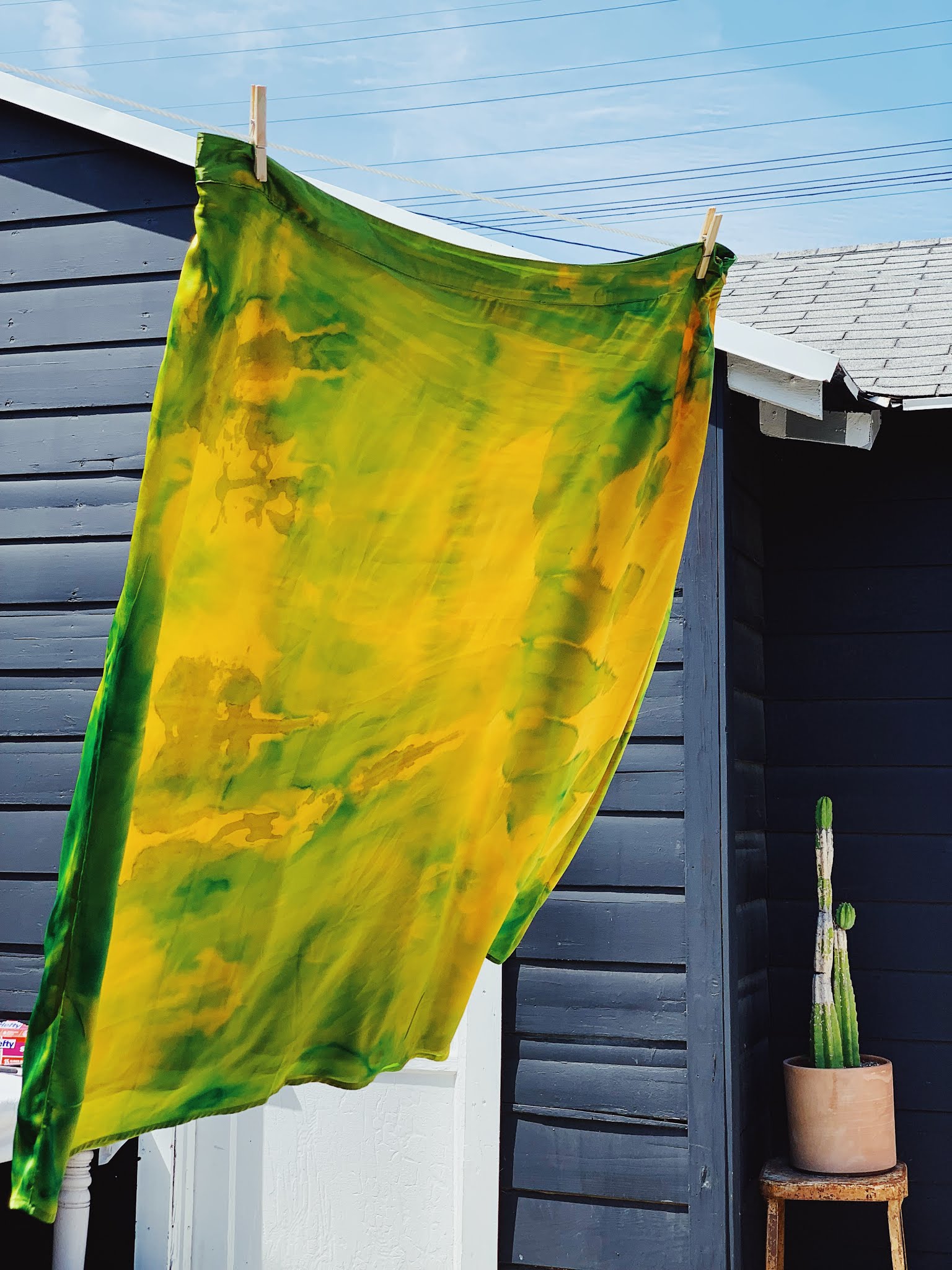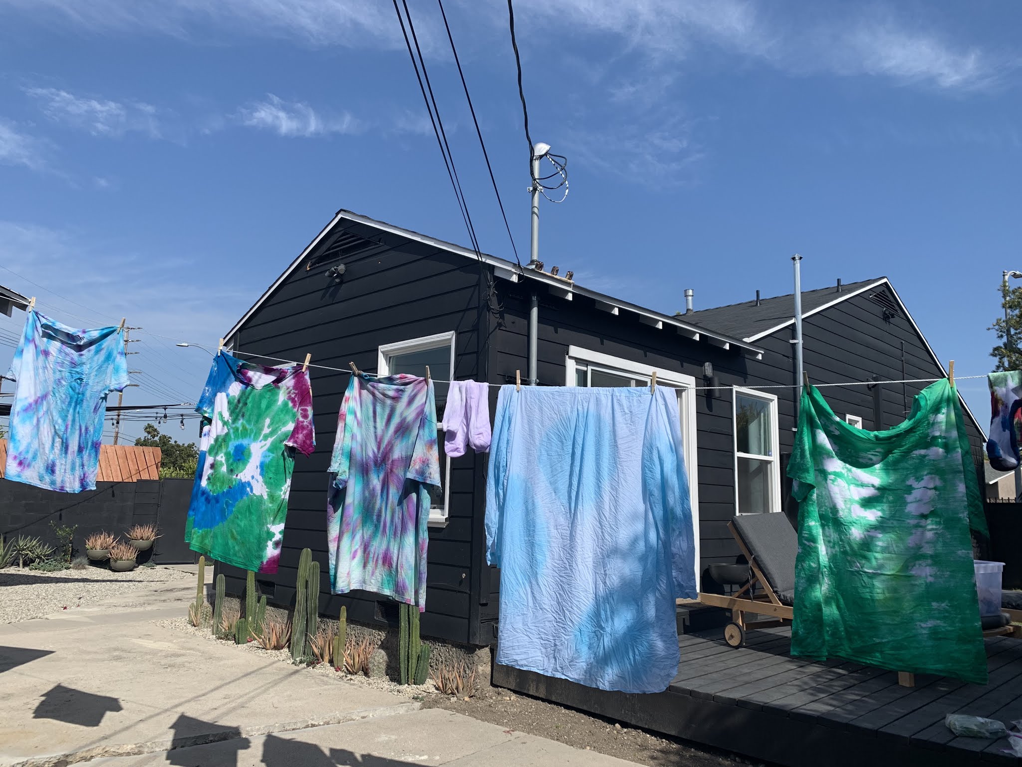 She asked if I wanted to go to a tie-dye party and the obvious answer was yes! I ran home grabbed a few white cotton pieces and we were on our way. The party was in the most charming LA backyard, there was a bull dog and kombucha cocktails – life is good.